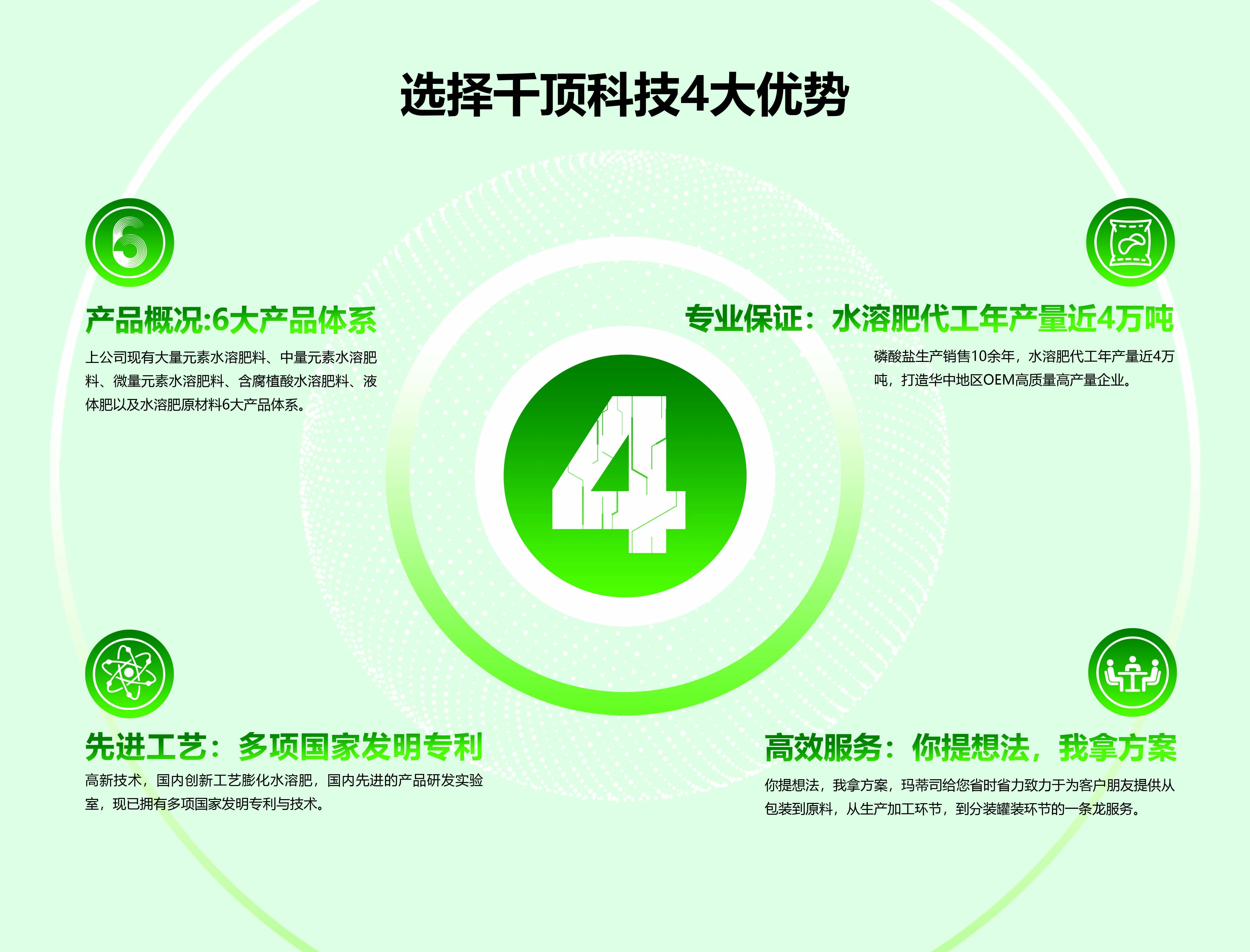 湖北千頂科技有限公司位于九省通衢,美麗的江城武漢,是一家專業(yè)從事研發(fā)、生產(chǎn)、磷酸鹽和高端水溶肥等一體化工企業(yè),是一家致力于打造農(nóng)業(yè)與工業(yè)攜手進步的化工企業(yè)...